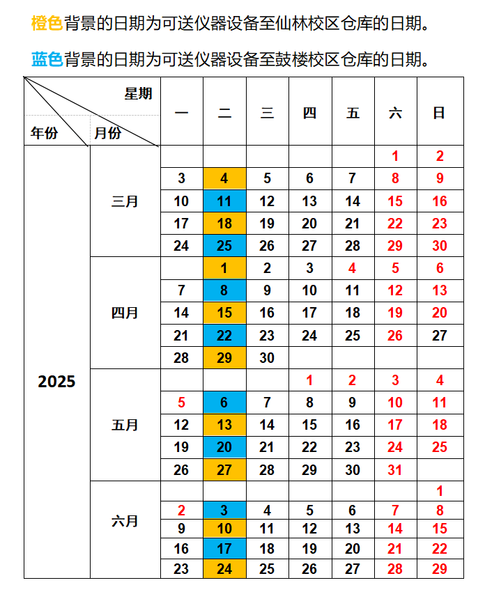 根据工作需要,本学期废旧仪器设备仓库开放日期安排如下,请各课题组根据仓库开放日期安排好本单位仪器设备报废工作。