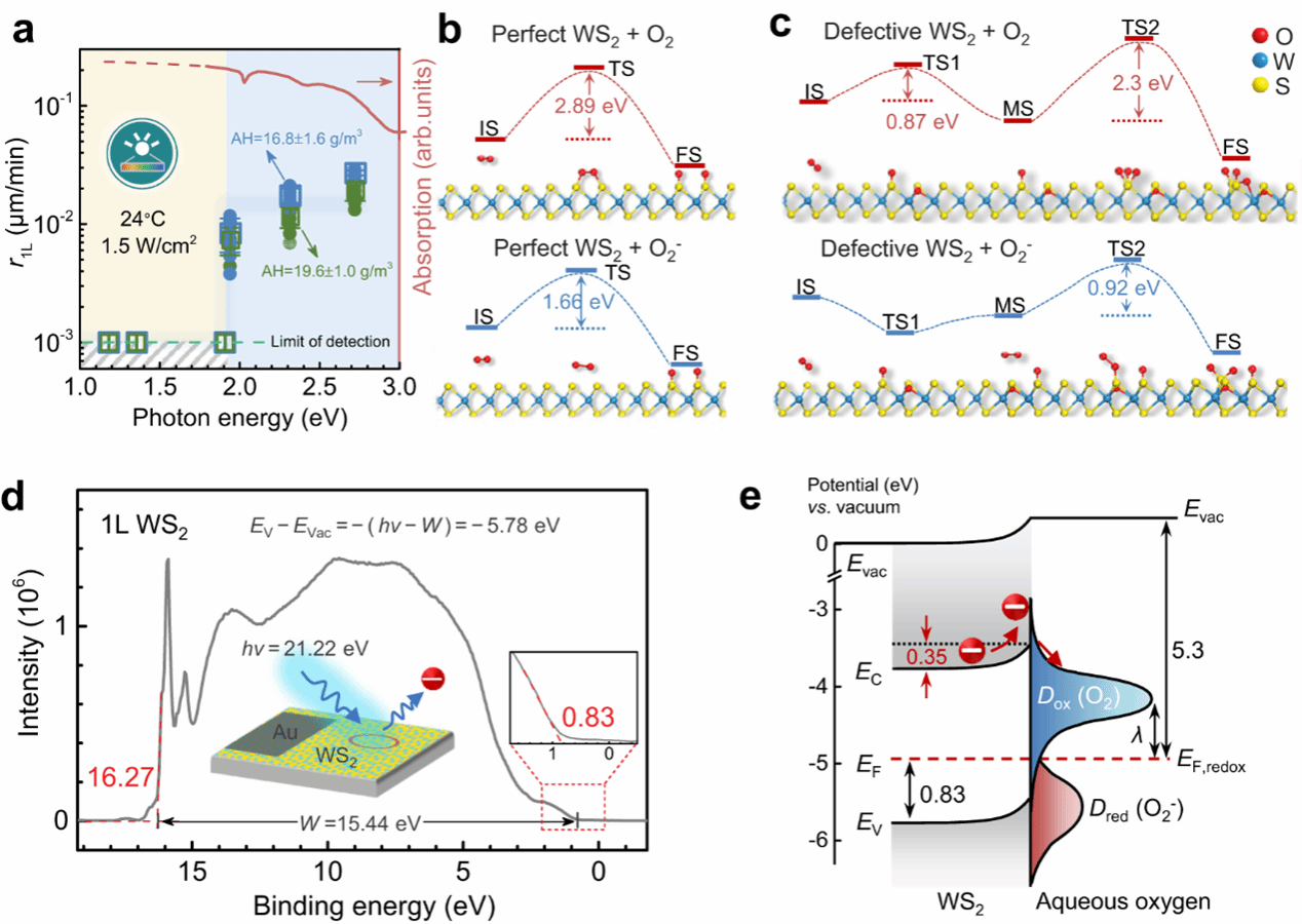 Recently, Professor Shi Yi, Li Songlin and their teams from the School of Electronic Science and Engineering made new progress in dimensionally confined semiconductors and published a research paper titled “Oxidation kinetics and non-Marcusian charge transfer in dimensionally confined semiconductors” on Nature Communications (//doi.org/10.1038/s41467-023-39781-y). The paper has three joint first authors: Xu Ning, a Ph.D. student from the School of Electronics Engineering; Shi Li, a doctoral student from the School of Physics at Southeast University (currently an Associate Professor at Nanjing University of Posts and Telecommunications); and Pei Xudong, a Ph.D. student from the School of Modern Engineering. The corresponding authors of the paper are Associate Professor Li Songlin, Professor Shi Yi, Professor Wang Peng from the School of Modern Engineering, and Professor Wang Jinlan from the School of Physics at Southeast University. The research work received strong support from Professor Chen Jian of the School of Electronics Engineering.